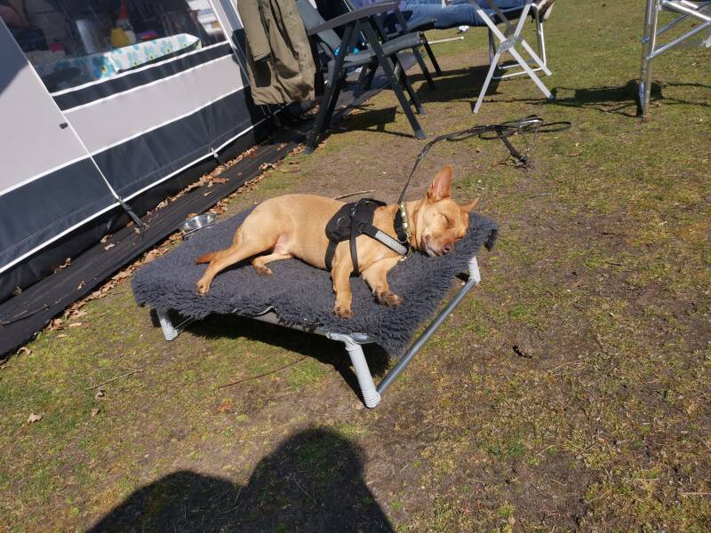 Mambo had een buik als leer, kaal en dik van het jarenlang liggen op de kille, harde vloer. Sinds zijn puppytijd kende hij niet anders. Toen hij ineens ruimte kreeg, wist hij niet wat hem overkwam. Hij rende eindeloos in rondjes, alsof hij zijn vrijheid niet kon geloven. Later vond hij een thuis bij bij Connie en later vloog Rosie ook een rescuehond hem achterna om samen te genieten. Daar heeft hij een prachtig leven gehad. Inmiddels is Mambo overleden, maar hij stierf als een geliefde hond, vrij en verzorgd.