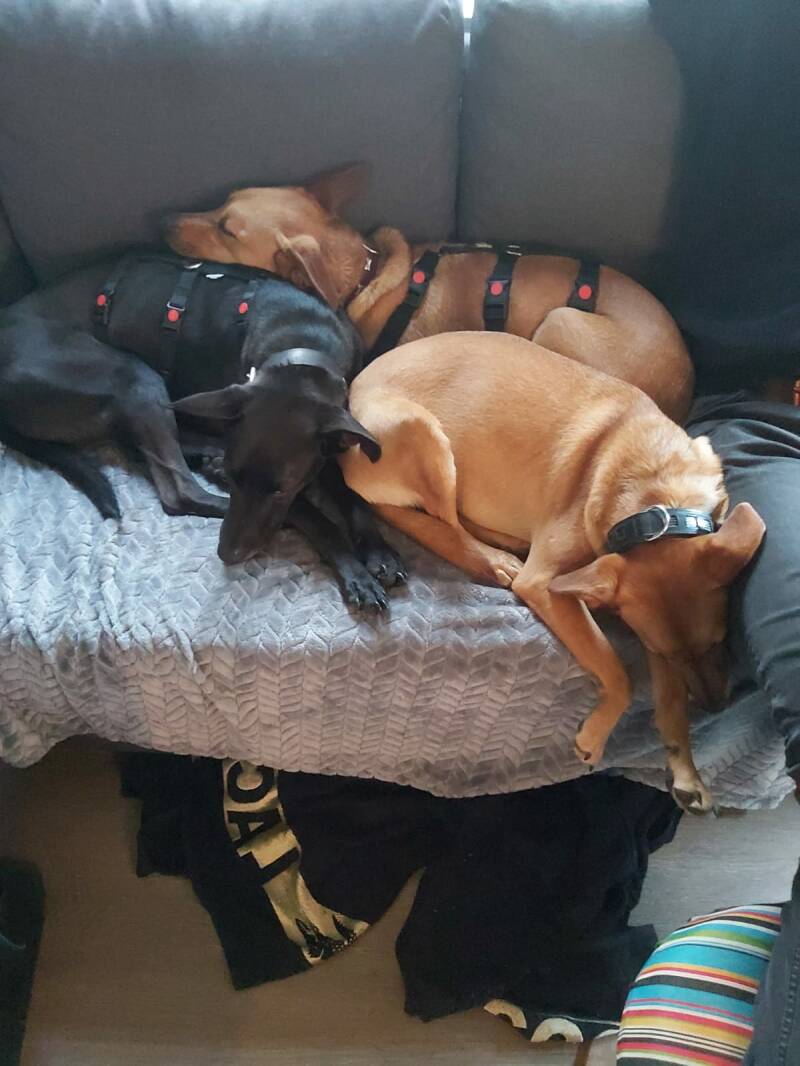Tijdens mijn vrijwilligerswerk bij een rancho voor gehandicapte kinderen op het eiland, kwamen we tijdens buitenritten regelmatig gedumpte honden tegen. De pups lagen bij hun dode opgeblazen moeder. Het was hartverscheurend. Nu leven ze een fantastisch leven!
