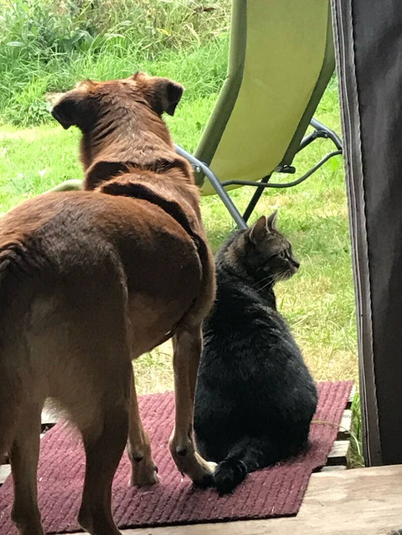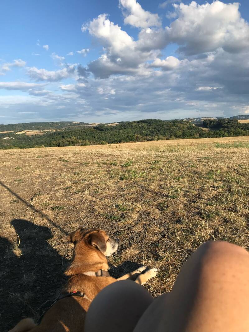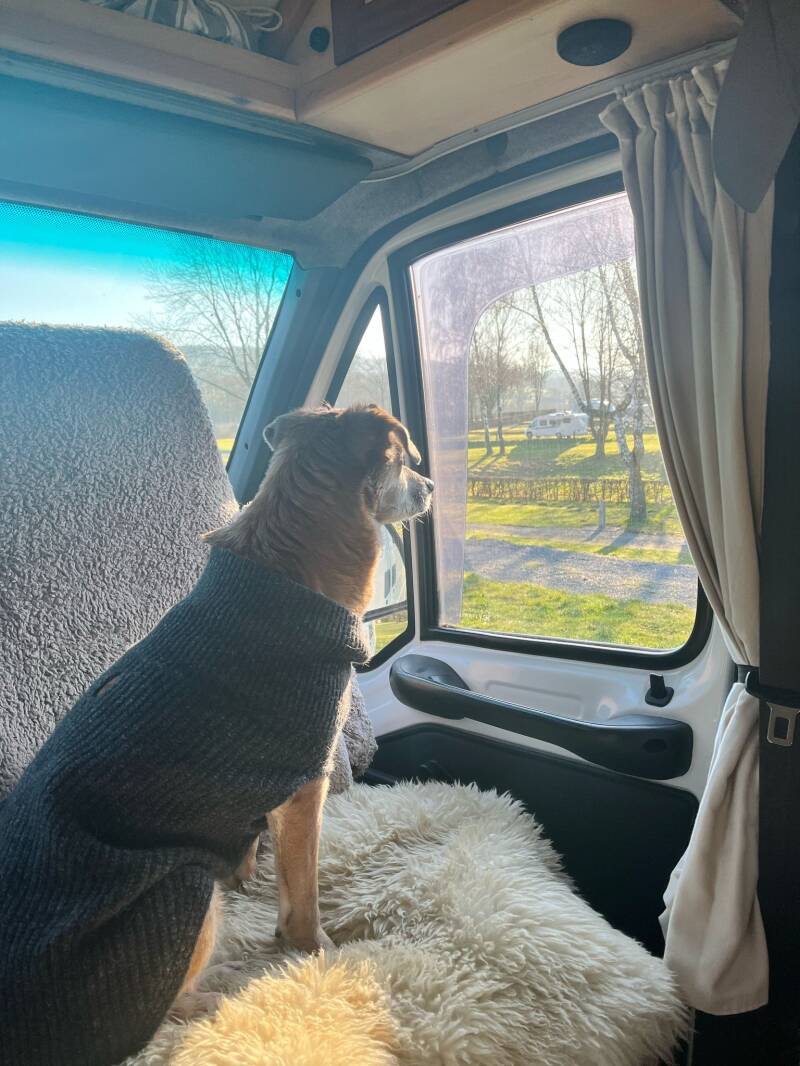 Fijn genoeg, kan ik je vertellen dat het heeeel goed gaat met ons. En ja, La Toya geniet van haar leventje hier. We hebben het echt goed met elkaar. Het blijft een vreugde om haar bij mij te mogen hebben. Ze heeft zich ontwikkeld tot een heel evenwichtige, blije hond. Paar jaartjes terug heb ik een klein zelfbouw camper busje gekocht, en daarmee gaan we als het even kan op stap. Daar genieten we beiden van. Ze zit naast me op de stoel als we rijden en kan niet wachten eruit te springen als we ergens aankomen. Lekker rondsnuffelen en terrein verkennen. Nu ik ( echt net) gestopt ben met werken, kunnen we dit nog vaker doen😃. Door veel met haar te zijn gaan lopen zijn haar spieren sterker geworden en doet ze het echt goed met haar pootje. Heel af en toe gaat het mis, dan jankt ze en houdt haar poot op. Ik masseer dan vanaf schouderblad naar beneden en dan gaat ze weer als een speer. Ze vertrouwt me hierbij volkomen. Ontroerend!