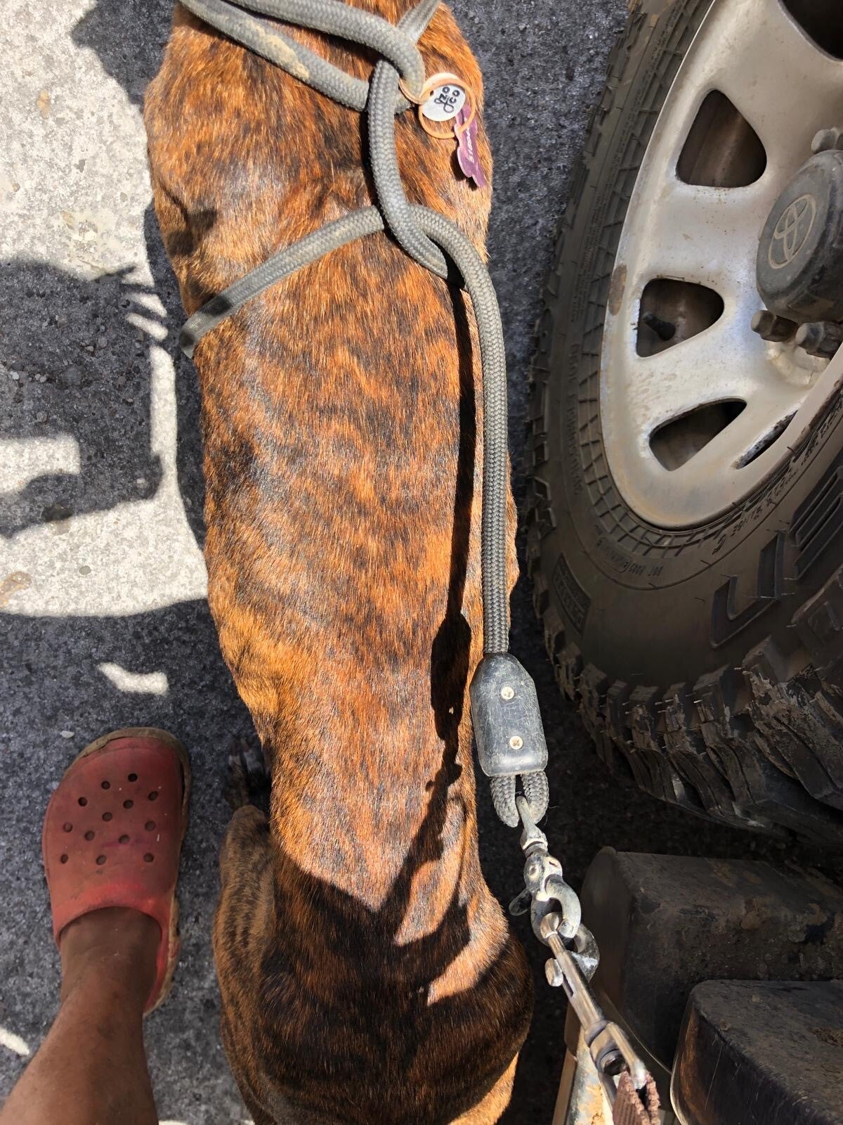 Bonita is vanaf begin september 2020 bij ons op de opvang, we waren bezig met de vangkooi neerzetten voor Pablo toen voorbijgangers ons vertelden dat er een hond in de bosjes verstopt zat. We zijn haar meteen gaan zoeken. En daar lag ze, bang en mager. Ze had heel recent nog melk gegeven aan haar pups, maar er waren geen pups te vinden. Ze is gedumpt zonder haar baby's.