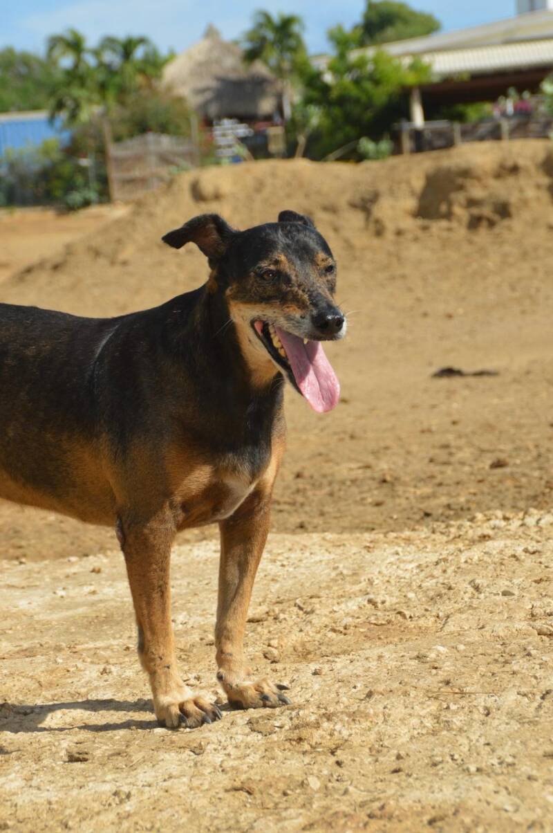 Ik ben Dandy, een stoere maar zachte rescuehond. Mijn verhaal begint op straat, ergens in Curaçao, omgeving Koraal Tabak - Sint Joris, een bekende dumpplek voor dieren. Het leven was daar hard. Mijn tanden waren slecht, mijn huid zat vol wonden en littekens, en ik wist nooit zeker waar mijn volgende maaltijd vandaan zou komen. Gelukkig was er een lieve dame die me af en toe wat te eten gaf. Ze helpt nog steeds als deel “Baasje op Afstand,” en daar ben ik haar heel dankbaar voor. Maar toen kwam de lockdown, en alles veranderde. Mensen mochten hun huis niet meer uit, en ik en mijn beste vriendin Balou stonden er helemaal alleen voor.