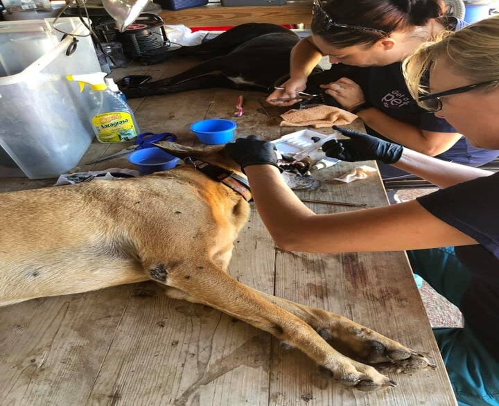 Vandaag vonden we een hond langs de weg. Ze was meer dood dan levend toen wij haar vonden. We hebben haar Pantera genoemd. Ze had ontzettend veel karpatten (teken) en was erg vermagerd. Eenmaal aangekomen bij ons op de opvang heeft ze een lekkere bak met brokjes en een bak vers water gekregen. Uitrusten was ook hard nodig, zodat ze kon herstellen van het leven op straat.