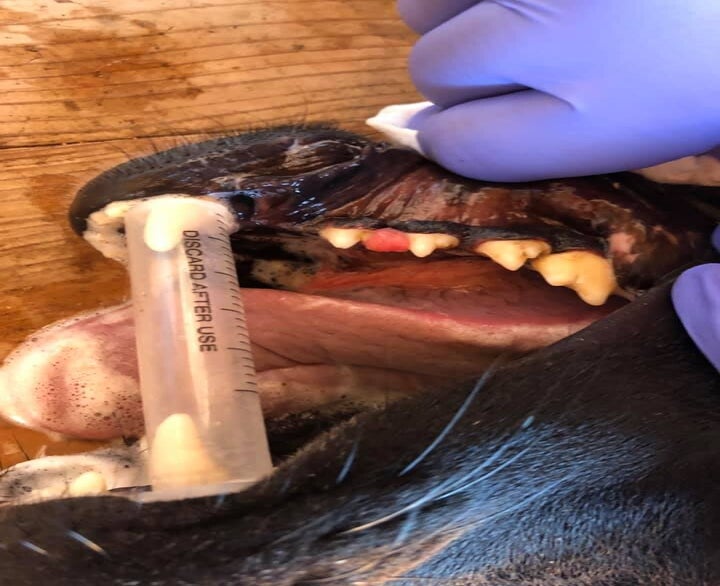 Vandaag kwam de dierenarts langs voor een gebitsbehandeling van verschillende honden. Ook Pantera was aan de beurt. Tandplak en zelfs tandsteen werd verwijderd. Ook werd het vervelende bultje die je kan zien op de foto verwijderd. Ze kan er voorlopig weer even tegenaan!